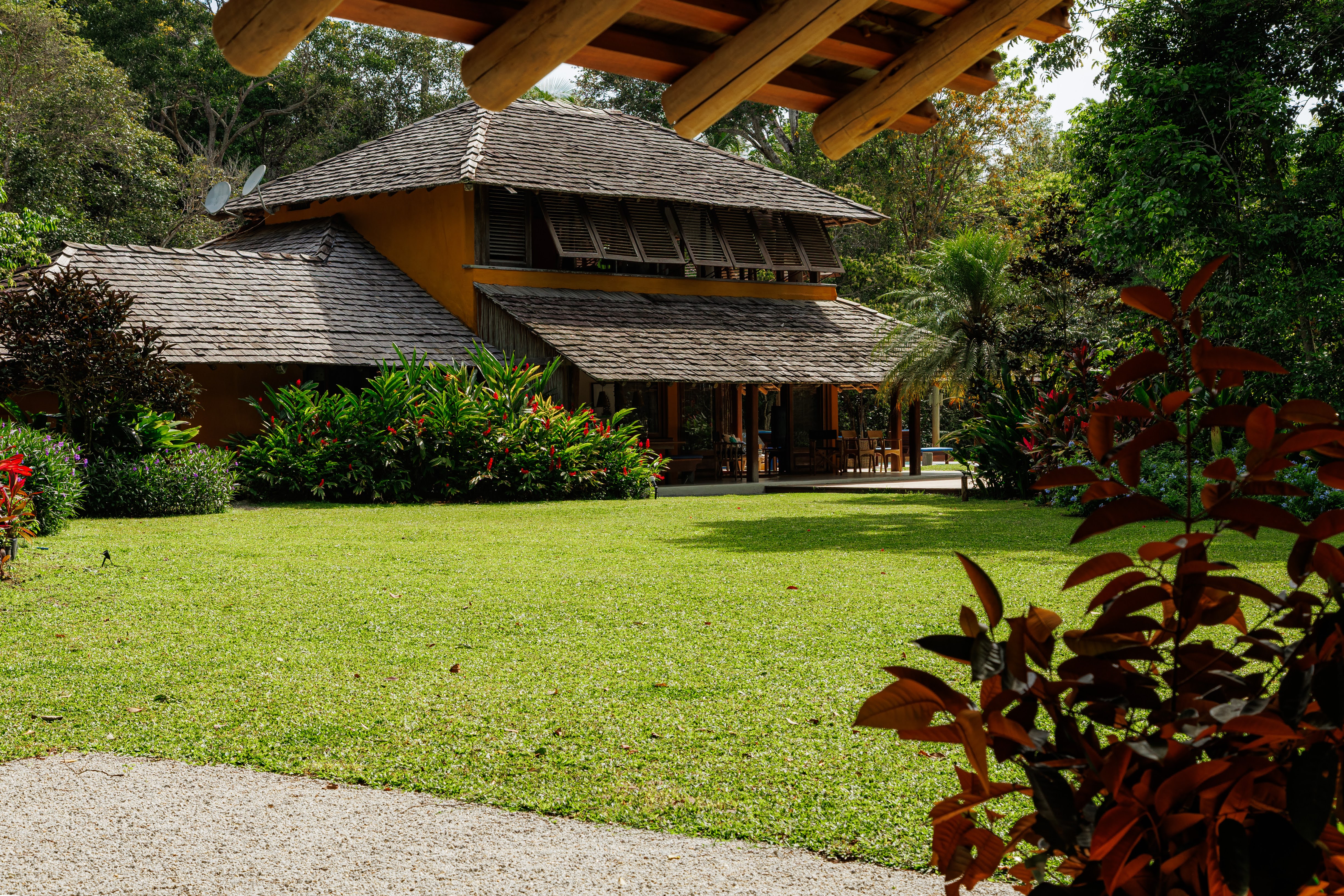 Localizada em um condomínio fechado, seguro e silencioso, a casa está totalmente integrada à natureza, proporcionando privacidade e tranquilidade. Possui um amplo jardim, piscina e diversos decks de apoio, ideais para relaxar e aproveitar o entorno.